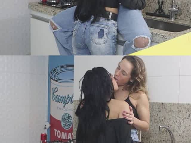 Two Girls Rubbing Each Other in Jeans in Intense Kisses