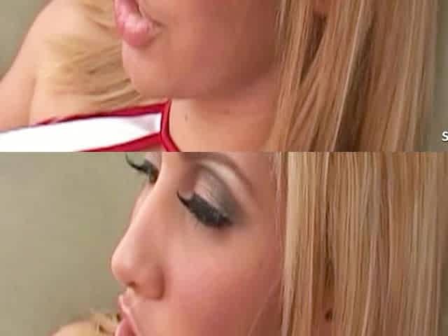Blonde and brunette lesbian girls licking and toying