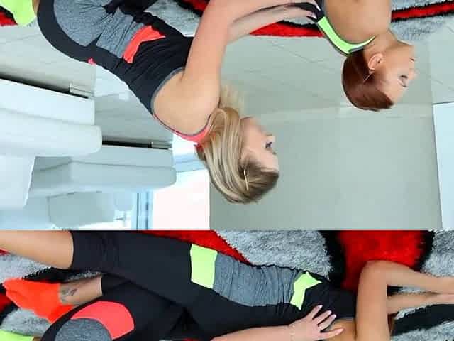 Small tits blondie Jessie Saint fingers her pussy after working out