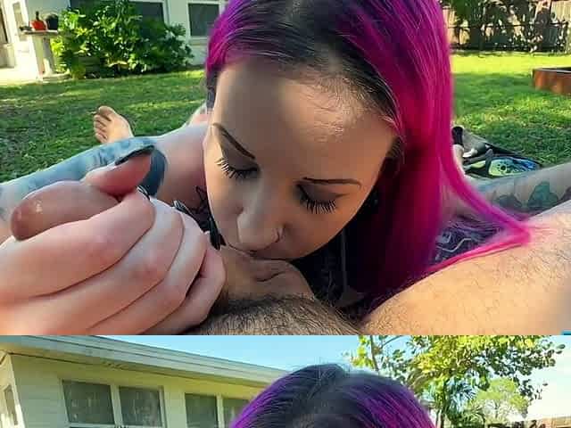 Tatted Babes Backyard Cock And Cum Feast