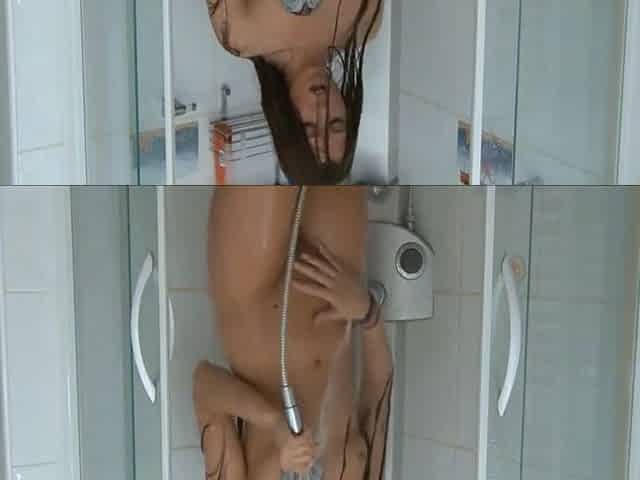 An awesome sideways pose masturbation with a long-legged brunette Eve Angel
