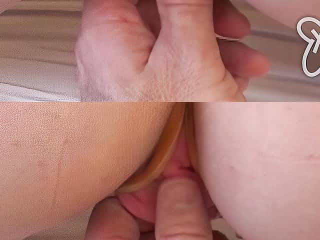Close-up on a moist amateur clit and pussy while it's getting toyed