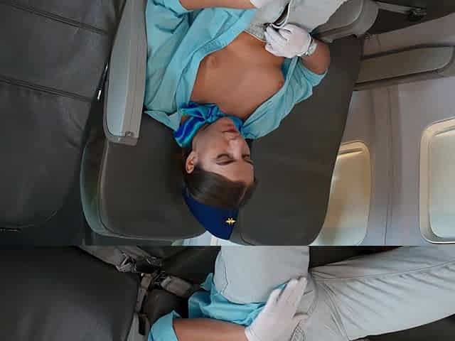 Solo stewardess Thea Lun uses the opportunity to masturbate