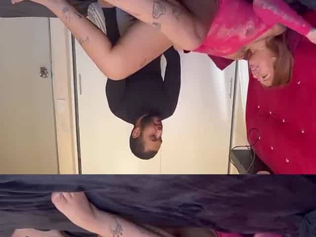 Filming my STEPSISTER teasing her pussy in lingerie and Black stockings