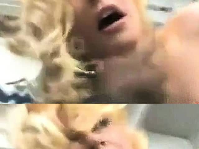 Slutty blonde teen babe Kasey Miller deep throats a cock and swallows