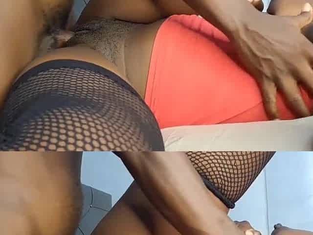 Slutty ebony cutie with a creamy vagina likes ramrod