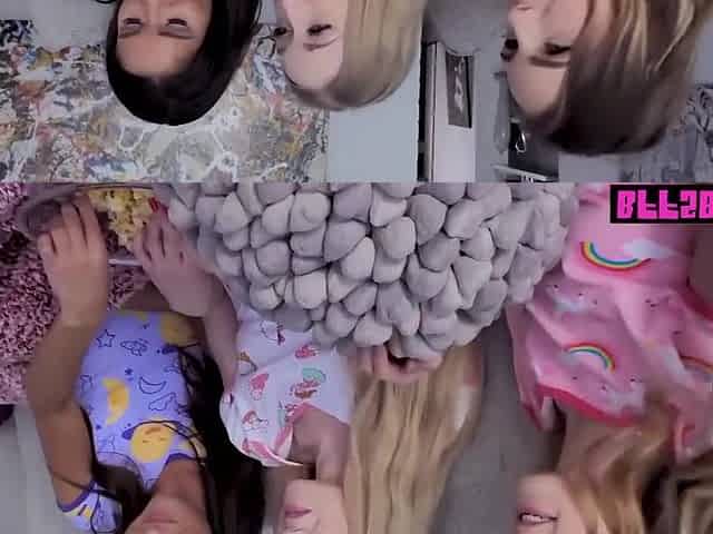 Pervy Stepbrother Drilling Three Lesbian Teen 18+ Pussies