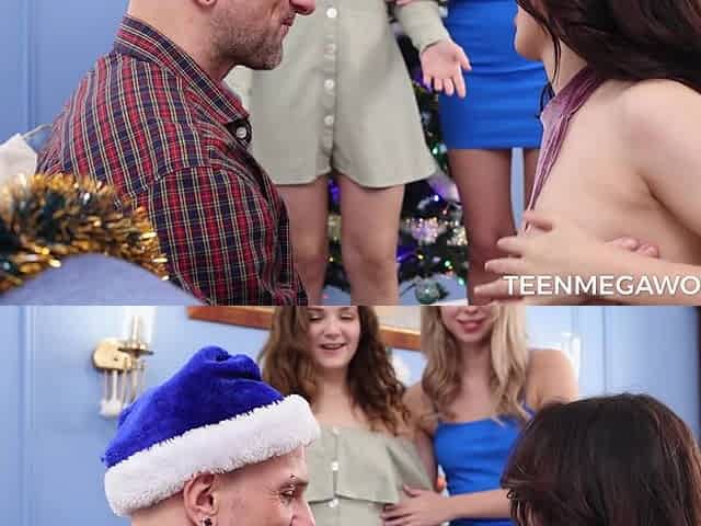 Three horny small nubiles trick and pound santa's rods