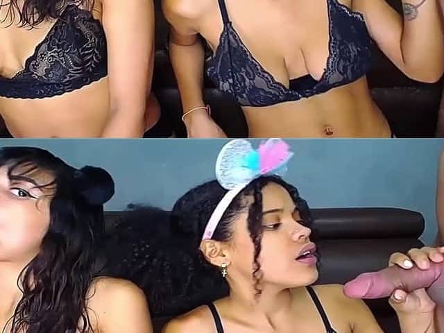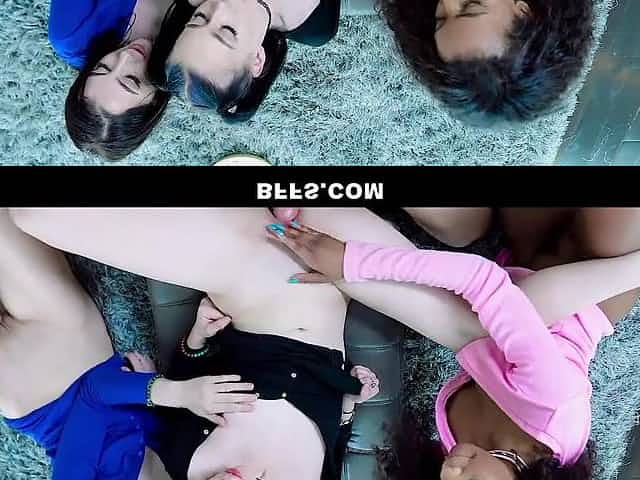 Diminutive teenie got bare and well-lubed up before having a 3 way with 2 more femmes