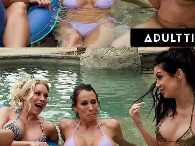 ADULT TIME - Nerdy Teen Gets REVERSE GANGBANGED By 5 BIG TITTY NEIGHBORHOOD MILFs! GROUP SEX ORGY!