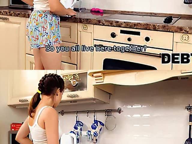 Sexy debtor and her roommates have foursome with tough lender