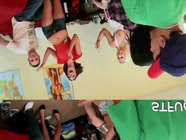 Two girls doing two dudes in a kinky teen orgy video