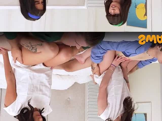 Two semen interchanging college dropout fucksluts petite titty share filthy sausages in bedroom group fuck!