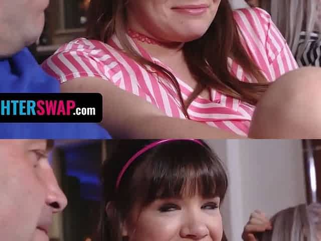 Daughterswap - 2 dirty stepfathers tricked and screwed their daughters during a movie night