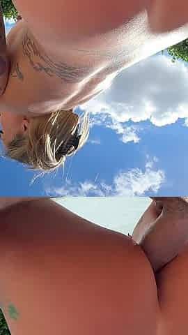Lovely Amateur teen brunette masturbating outdoor