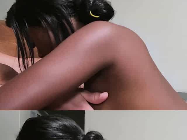 Small ebony honey sits on stepbros face and on his large knob