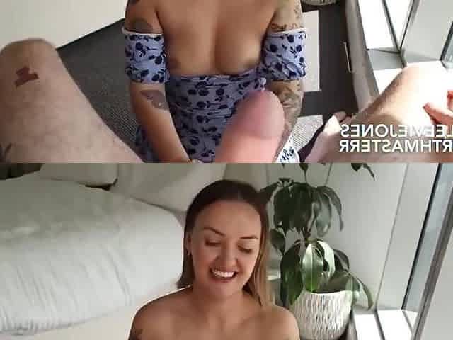 Hot little handjob slut jerks off dick