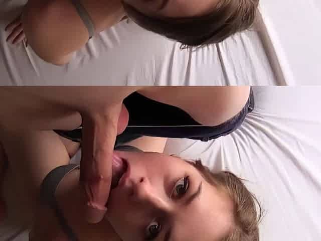 Sexy blonde POV teen slut handles cock on her knees