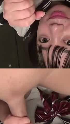 Japanese teen in uniform sucks jerks POV cock