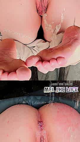 Large ass white gal pees all over herself and her cute feet