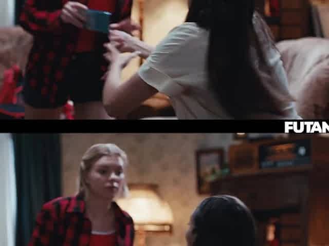 Sexy handjob by a teen Blonde for her futanari busty bestie