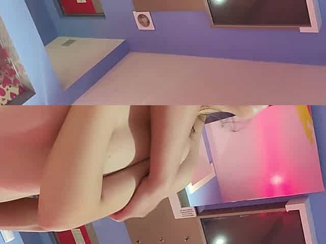 Teen ladyboy in jean shorts strips and masturbates her