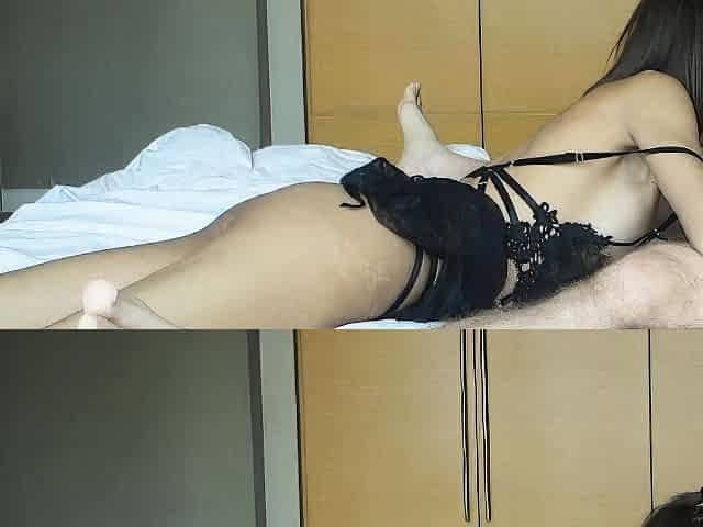 Slender Oriental ladyboy with natural titties sucks her boyfriend's penis