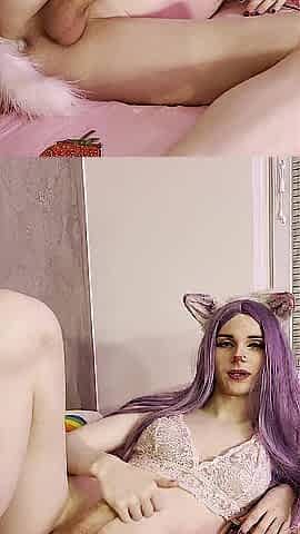 Ivy Kitsune Seduces Acrylickatequinn Handcuffs and Jerks Her off