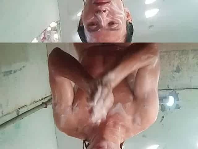 White Ladyboy Masturbates Underneath Shower Soaked Rod With a Shampoo