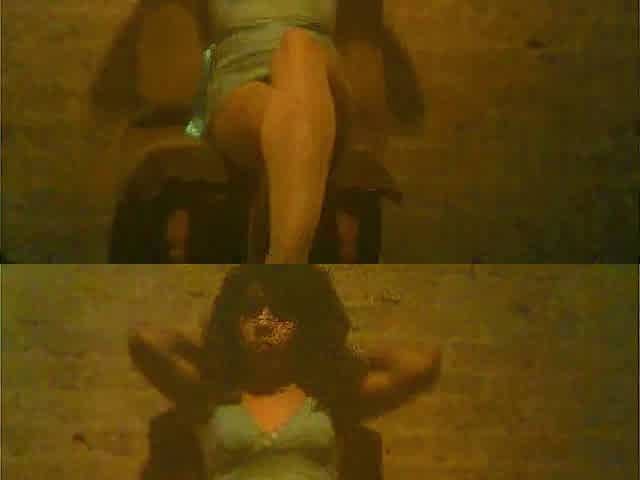 No subtitles Exhibitionist Gina plays in the theater bathroom