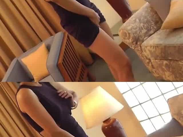 Brunette Asian Shemale in Blue Dress Strips and Jerks o