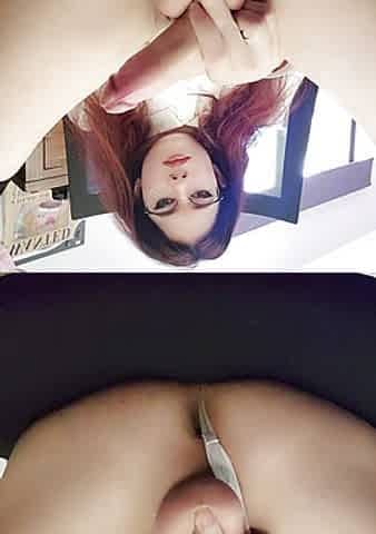 Redhead ladyboy with high heels stuffs a big dildo up her