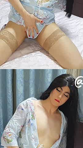 Very Cute Shemale Crossdresser Shows Ass and Cock in Bed
