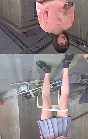 A Pleated Skirt Paired with White Underwear, and an Anal Plug Inserted on the Terrace