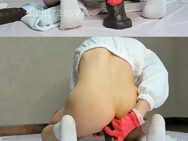 Big Ass Teen Shemale Plugs Her Booty with Thick Dildo to Masturbate by Honey Trans: Porn