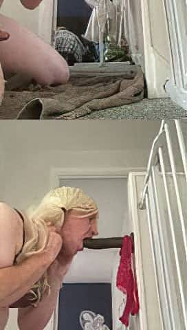 Cuffed & Chained Trans Girl In Rides A Strap On Until She
