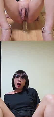 Cute shemale cum with large sex toy in her booty
