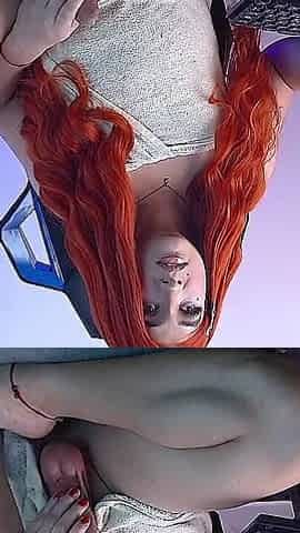 Redhead ladyboy with big tits gives her lover a blowjob and