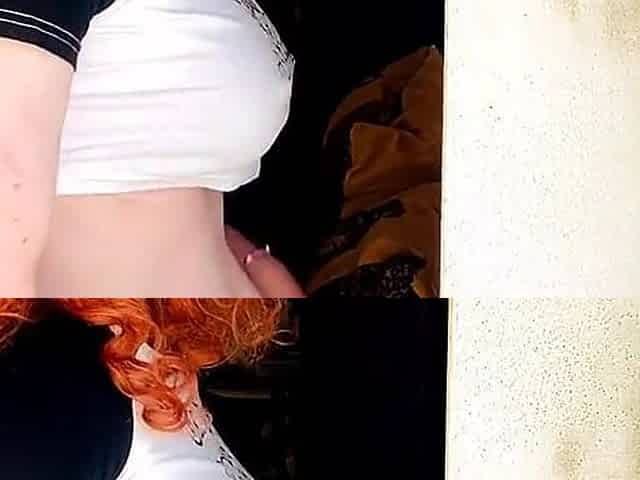 Skinny ladyboy with natural boobs jerks off till cumshot on