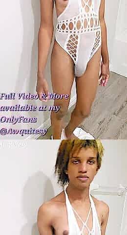 BBC Trans Gal Orgasims in White Bodysuit Slender Sissy Femboy Masturbation Show Preview