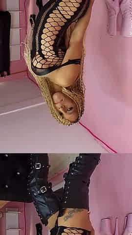 I Love Milking This Slut. Bodystring, Eiffel Tower Dildo in the Ass. Pink Fishnets, Stiletto Heels. Vanessabitchx
