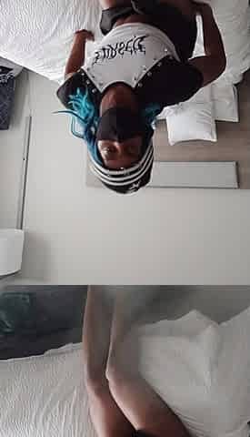 T-girl teen Natasha Nogueira in fishnets masturbates
