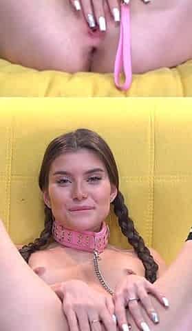 Legs spread pigtailed teen drips warm candle wax on her fat pussy