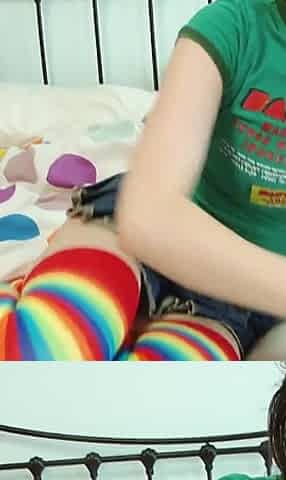 Crazy Teen with Colourful Stockings Wide Opens Her Legs on the Bed