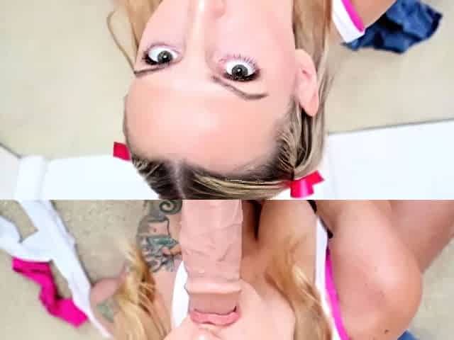 Horny blonde teen with huge boobs jerking off a lucky cock