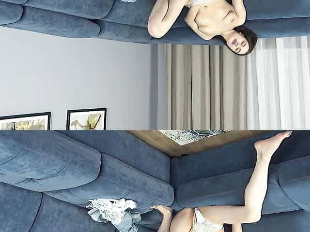 Gorgeous Girl Mila Azul Playing With Her Tits And Pussy On The Couch