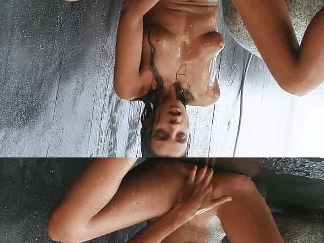 Tanned teen girl solo in the shower