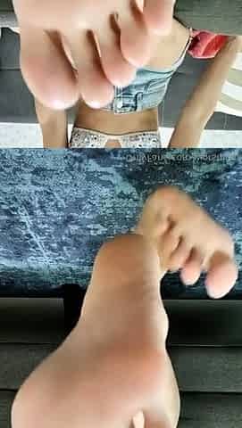 Cute teen girl enjoys foot fetish