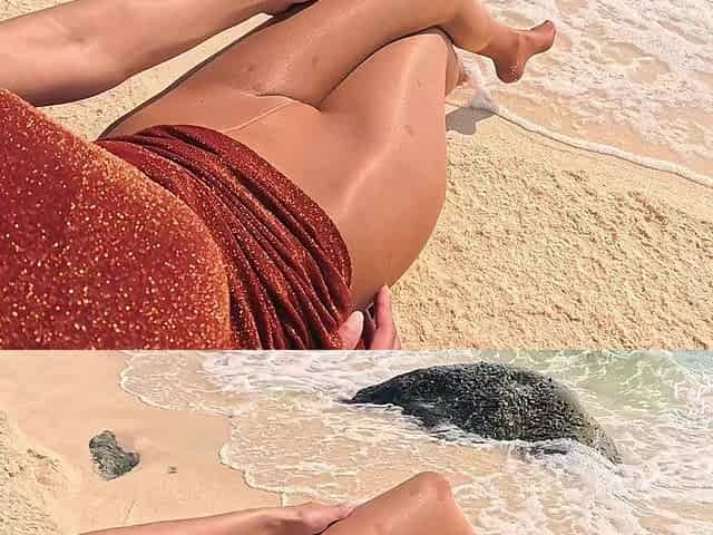 914 Shiny Wolford Pantyhose on the Beach