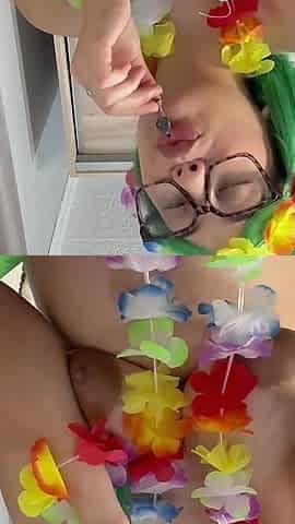 A Horny Nymph with a Huge Vibrator in Her Vagina